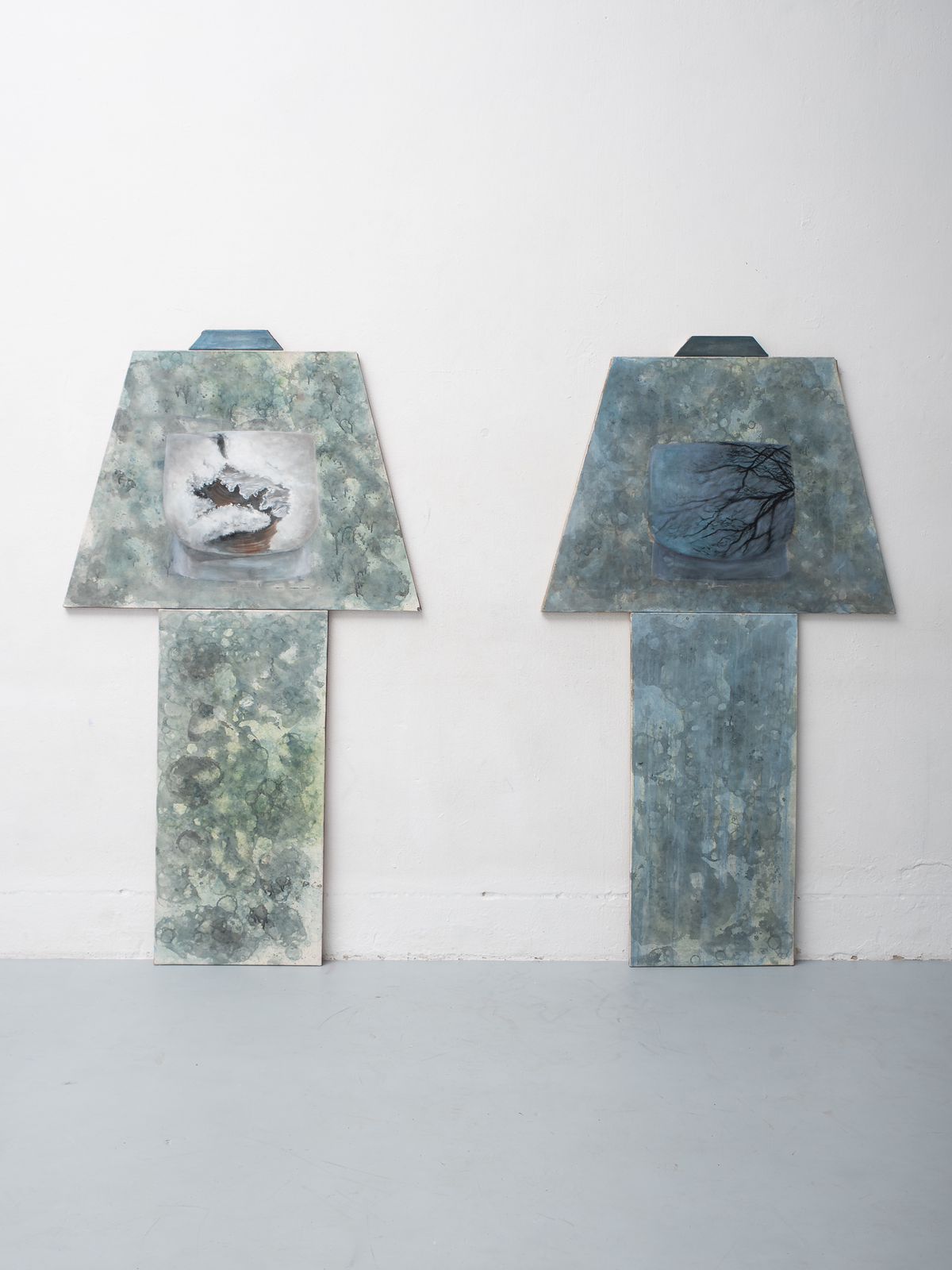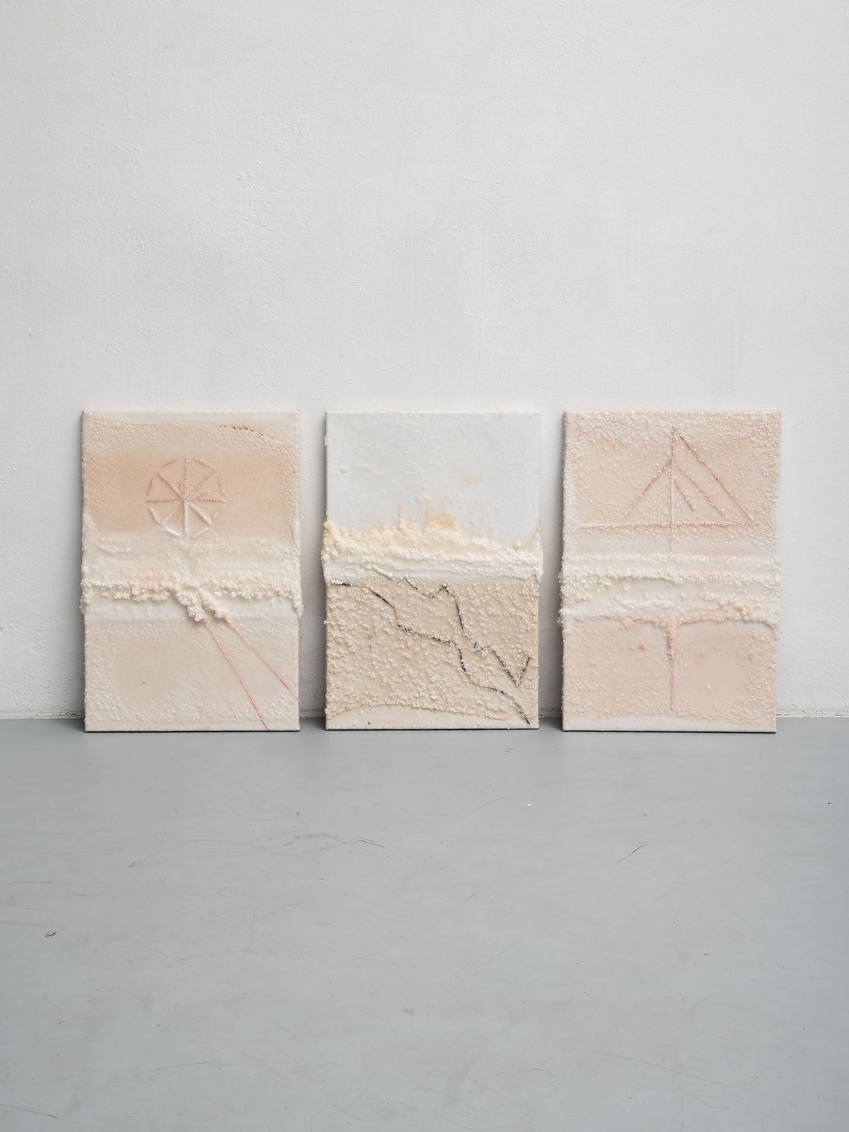 My intent is to experiments the fascinating layers of seasons. Frosted canvases, borned during a skittish rain or a scorching sun realizethe desire to work as a co-author with the Elements.